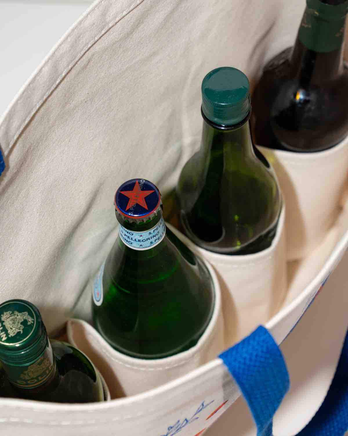 Say hello to Bianca. She's here to make sure you're having fun wherever you go! This heavy-duty canvas tote features a fabulous screen-printed design, contrasting spun poly handles, and three interior pockets for storing your wine, or water, bottles. Perfect for slinging over your shoulder, packing for a picnic, or stocking with Farm Shoppe goodies.