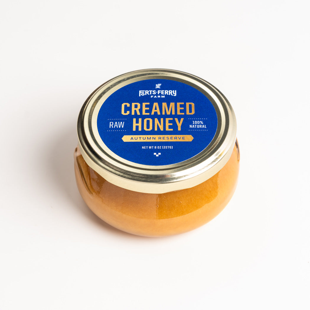 Creamed Raw Honey has the teeniest, most delicate crystals offering a velvety, nearly chewy texture. Our Autumn Reserve pays homage to the changing of the seasons — its amber hue and complex flavor reminiscent of butterscotch. Harvested from the same hives as our runny honey, it's loaded with antioxidants and great for combatting seasonal allergies.