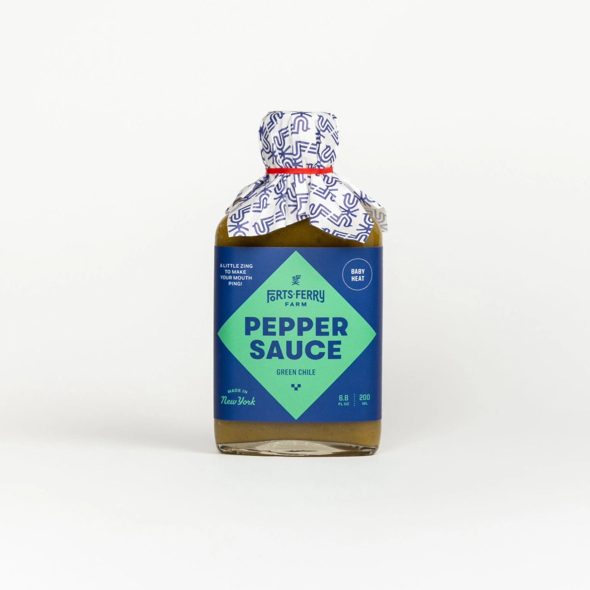 Our limited release, super special hot sauces made with our own pepper crop — grown, harvested, processed, and bottled right here at the farm. MILD HEAT Charred poblanos are giving "warm and smoky" with green jalepeños and serranos bringing some edge. Blended with our own tomatillos, there's a vibrancy reminiscent of green apples with just a little bit of heat. Great on eggs, tacos, and Tex Mex.