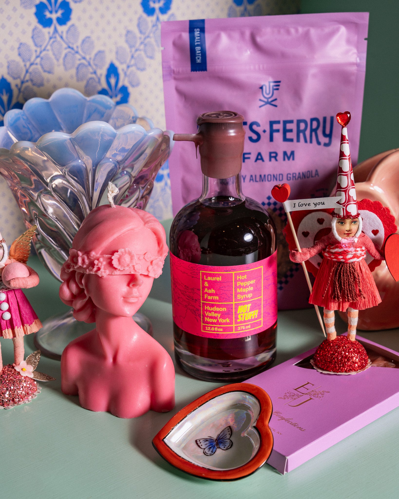 A collection capturing the distinct regional flavors of New York — Laurel and Ash's Very Dark Maple Syrup, Hot Pepper Maple Syrup, Maple Vinegar, and Heirloom Grain Pancake Mix.